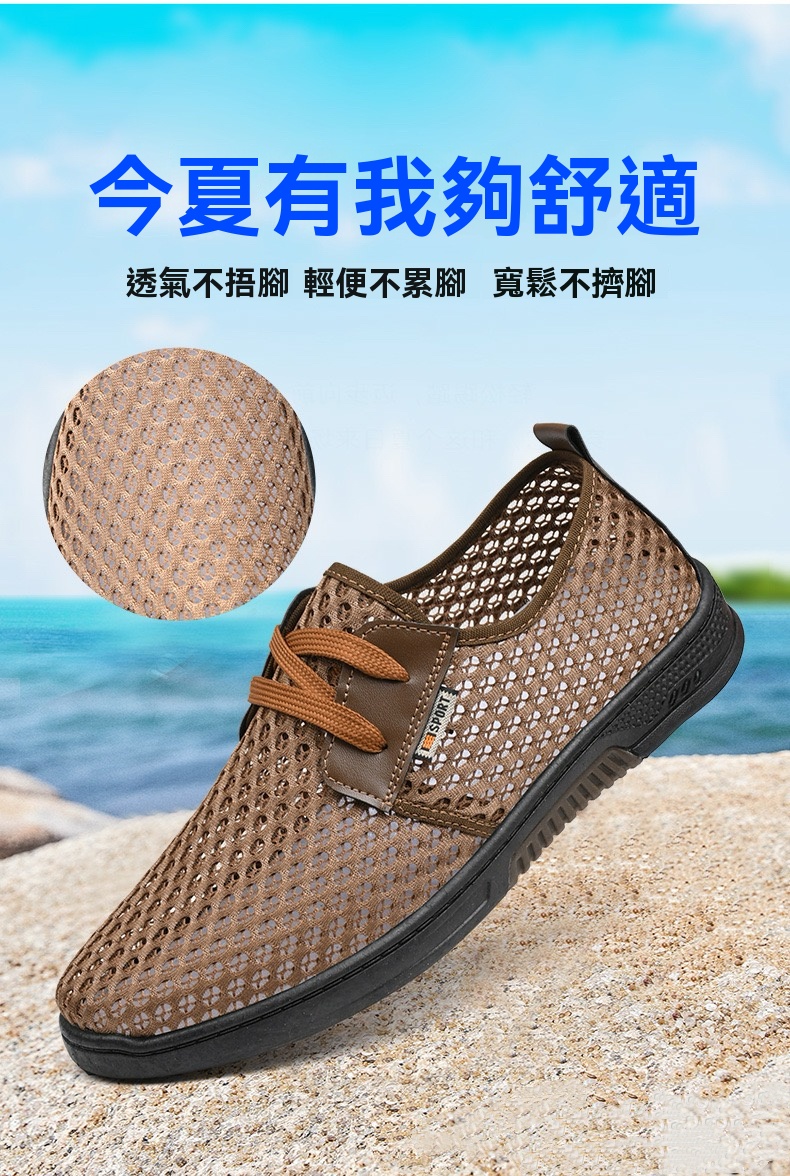 NT$1998詳情 - 薄款透氣鏤空網面鞋軟底防滑休閑鞋涼鞋NT$579