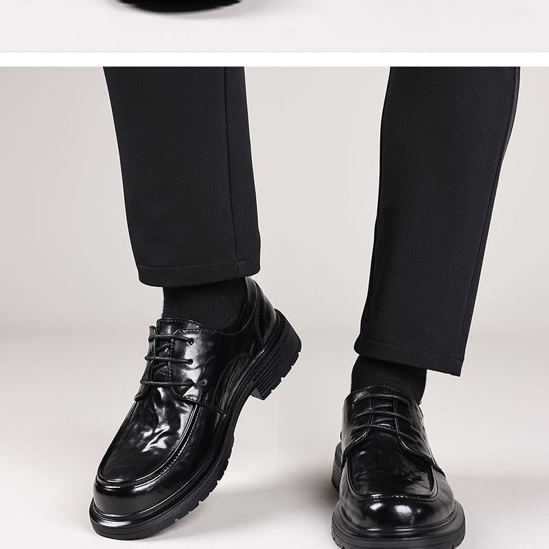 半小時前新款男士繫帶商務休閑百搭皮鞋【黑色+棕色】【到手兩雙】