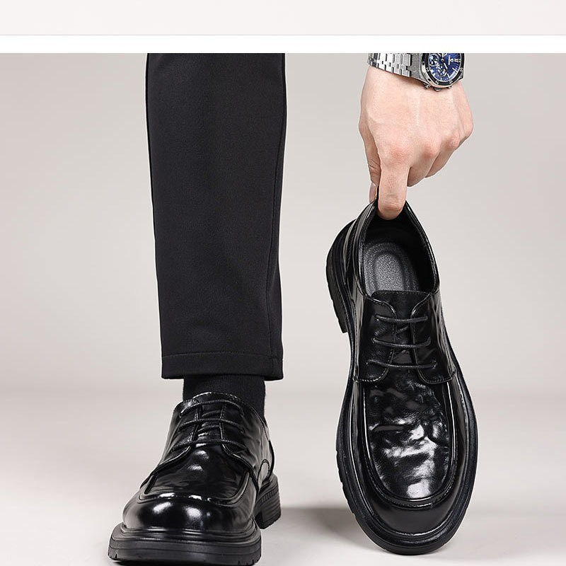 5分鐘前新款男士繫帶商務休閑百搭皮鞋【黑色+棕色】【到手兩雙】
