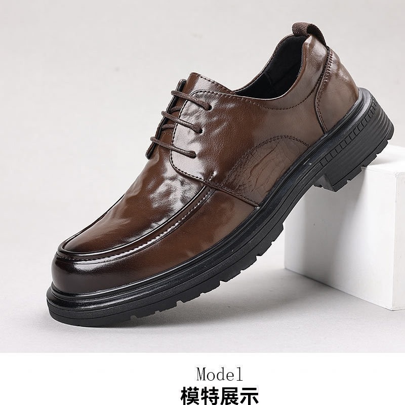 3分鐘前新款男士繫帶商務休閑百搭皮鞋【黑色+棕色】【到手兩雙】
