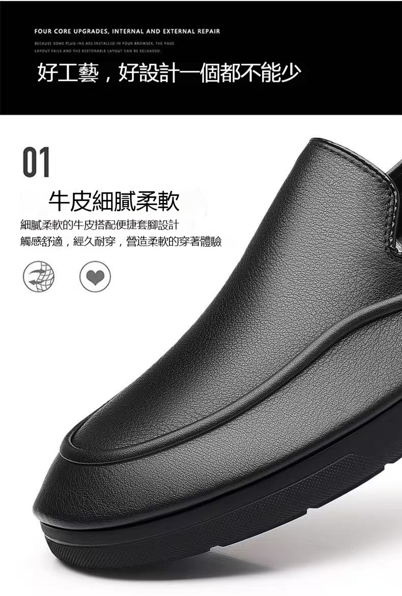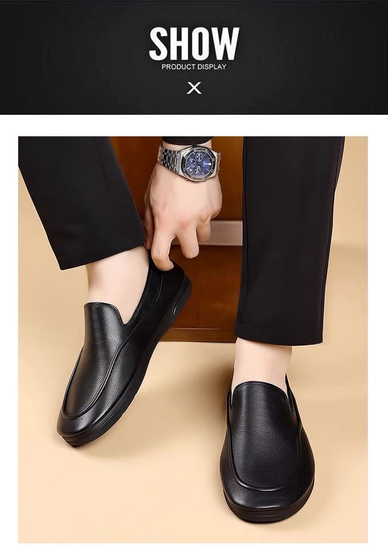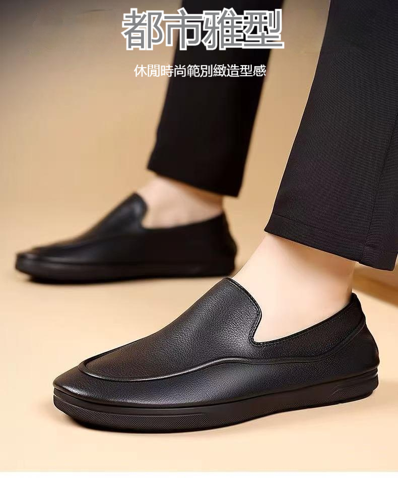 2分鐘前一腳蹬夏季舒適軟面休閑商務皮鞋軟底開車豆豆鞋!【黑色】【到手2雙】一雙僅需599【我承諾一年保固!斷底脫膠免費換新!】