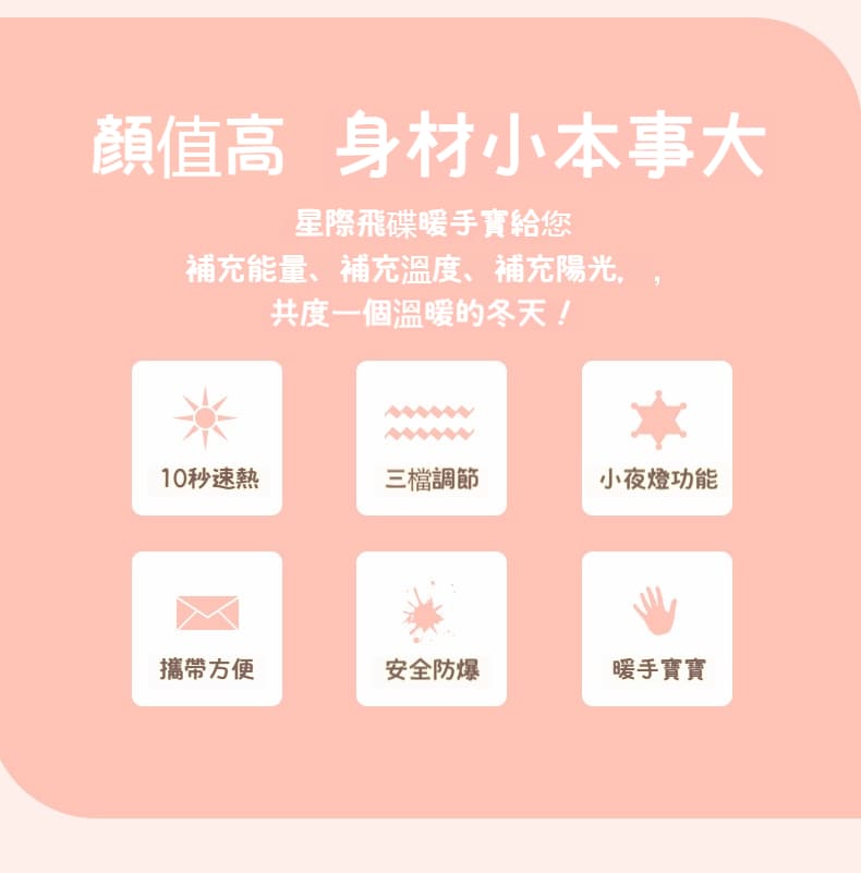 3分鐘前【少女粉】一秒即熱外形飛碟【暖手寶】可做行動電源!多種用途!這個冬天不再冷!