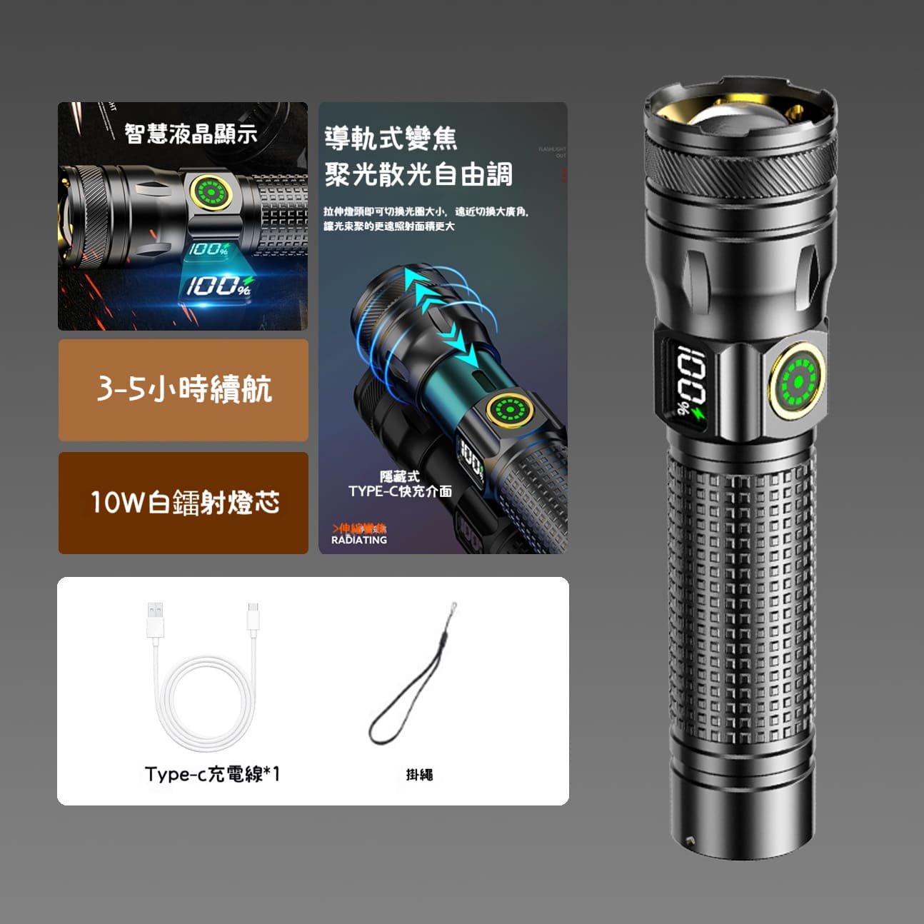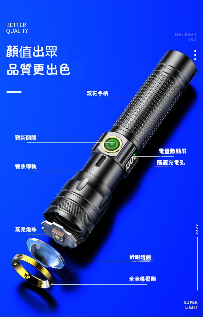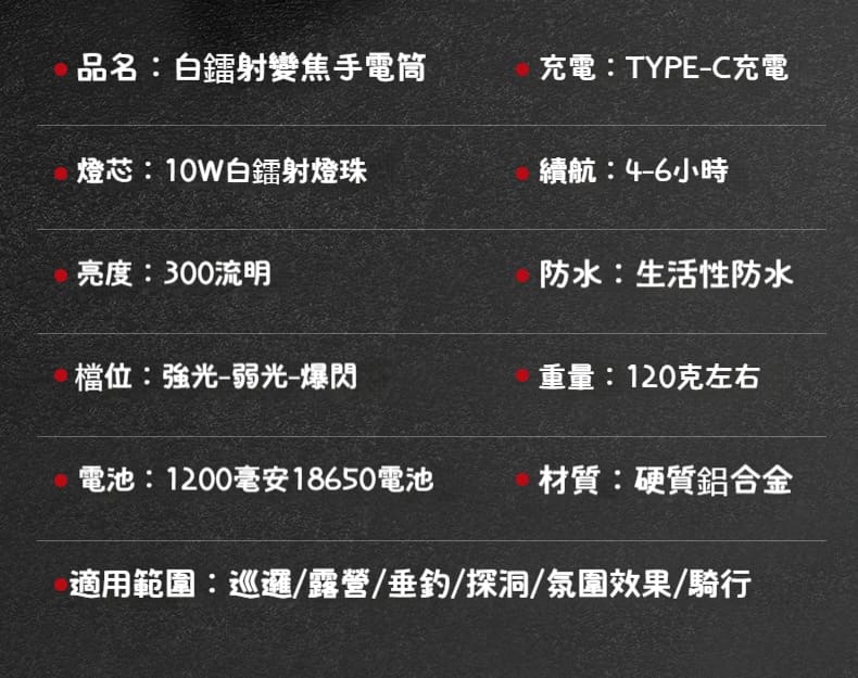 4分鐘前【超聚光遠射】300流明超高亮度合金手電筒